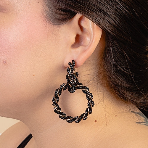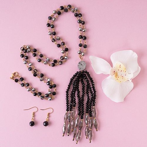 SPEAK TO ME WITH GOLD CHAINS TASSEL EARRINGS, BLACK