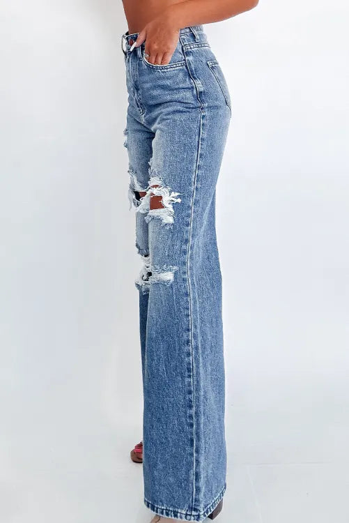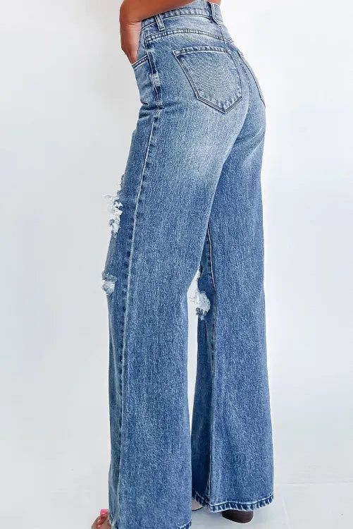 Ashleigh Blue Acid Wash Distressed Wide Leg High Waist Jeans