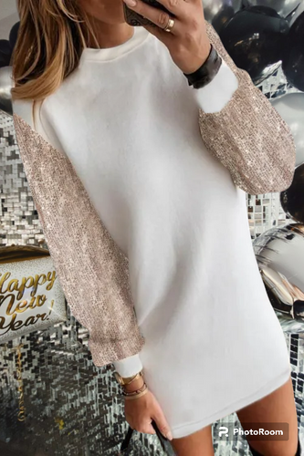White Sequined Drinks Pattern Ruffle Mini Dress
