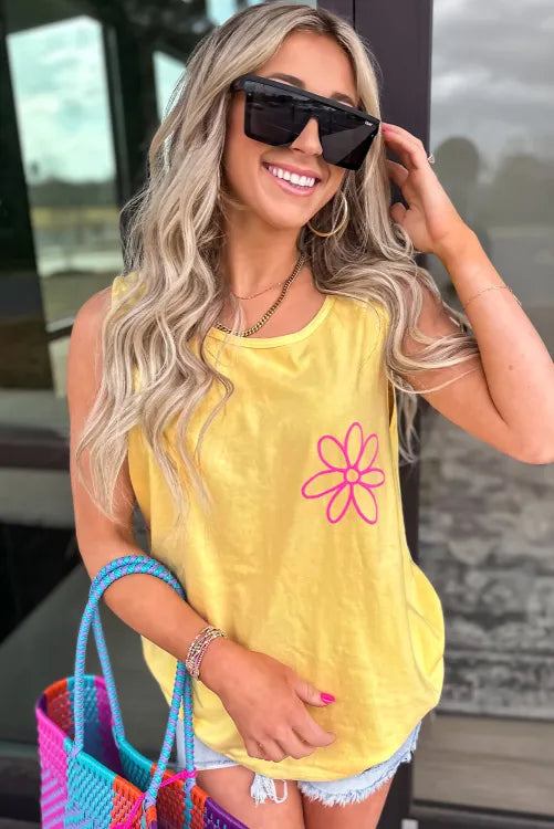 "WAITLIST" Yellow Cream Flower Graphic Casual Tank Top