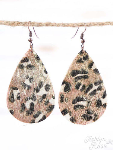 Leopard Print Teardrop Earrings with Gold Shimmer, Copper