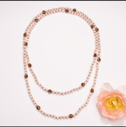 Crystal Beaded Necklace with Leopard Beads - Beige